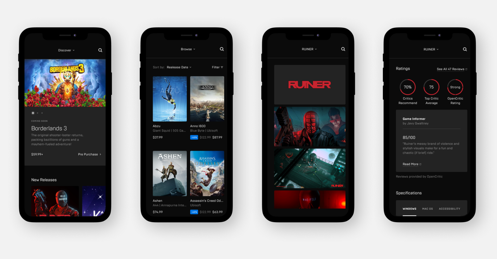 Design a scalable multi-platform game publishing user experience solution that enables and facilitates game consumer, developer and game publisher interactions. Leveraging the Epic Games store as the primary user-experience and gateway to a cohesive, intuitive user-centered product ecosystem.